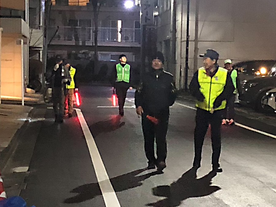夜の住宅街や交差点、神社周辺などをゆっくり巡り、年末特有の慌ただしい時期に、あらためて防災・防犯意識を共有する時間となりました。